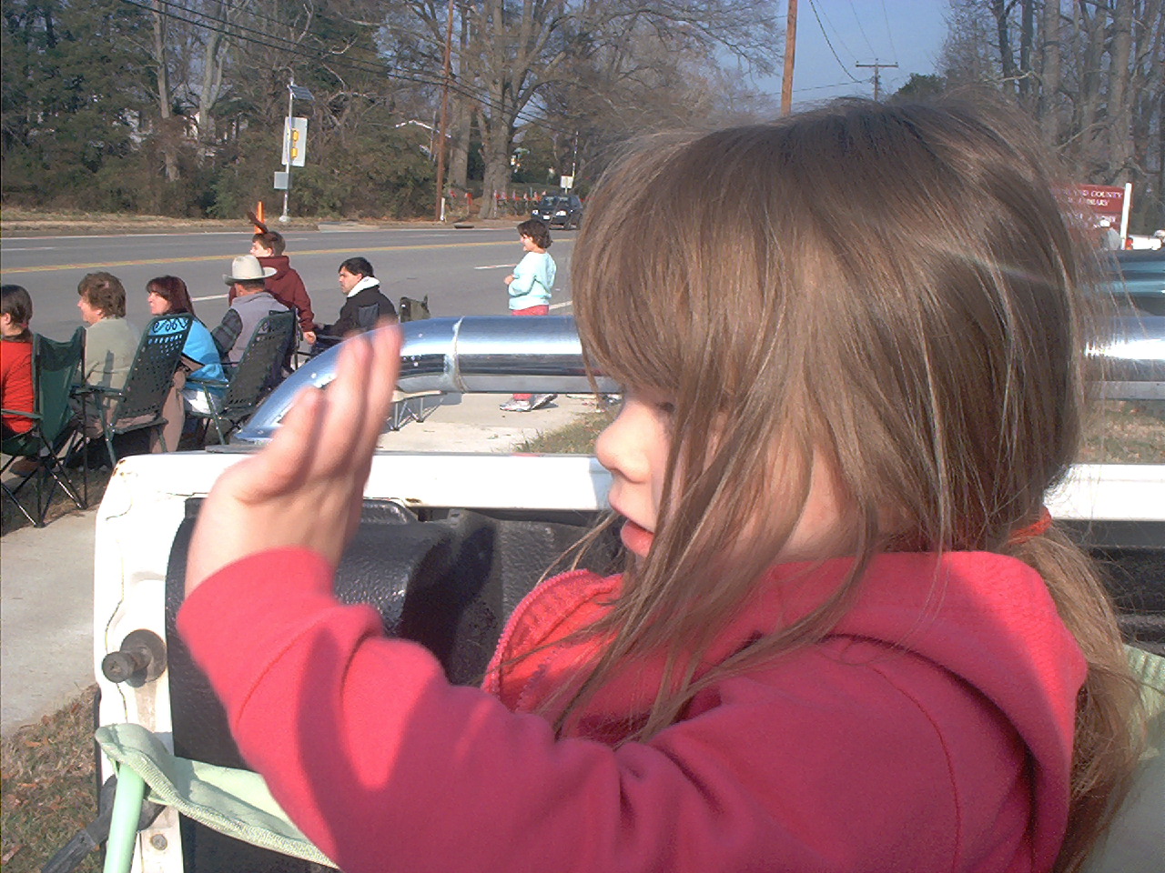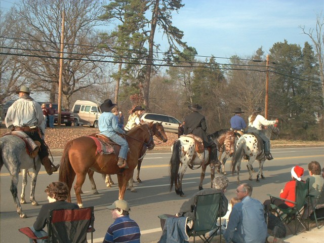 I thought I would share a few pics from the local parade here. Lil Lilred bout waved her wrist plum off. I thought she was gonna jump off the back of the truck when she seen santa and the horses..LOL...