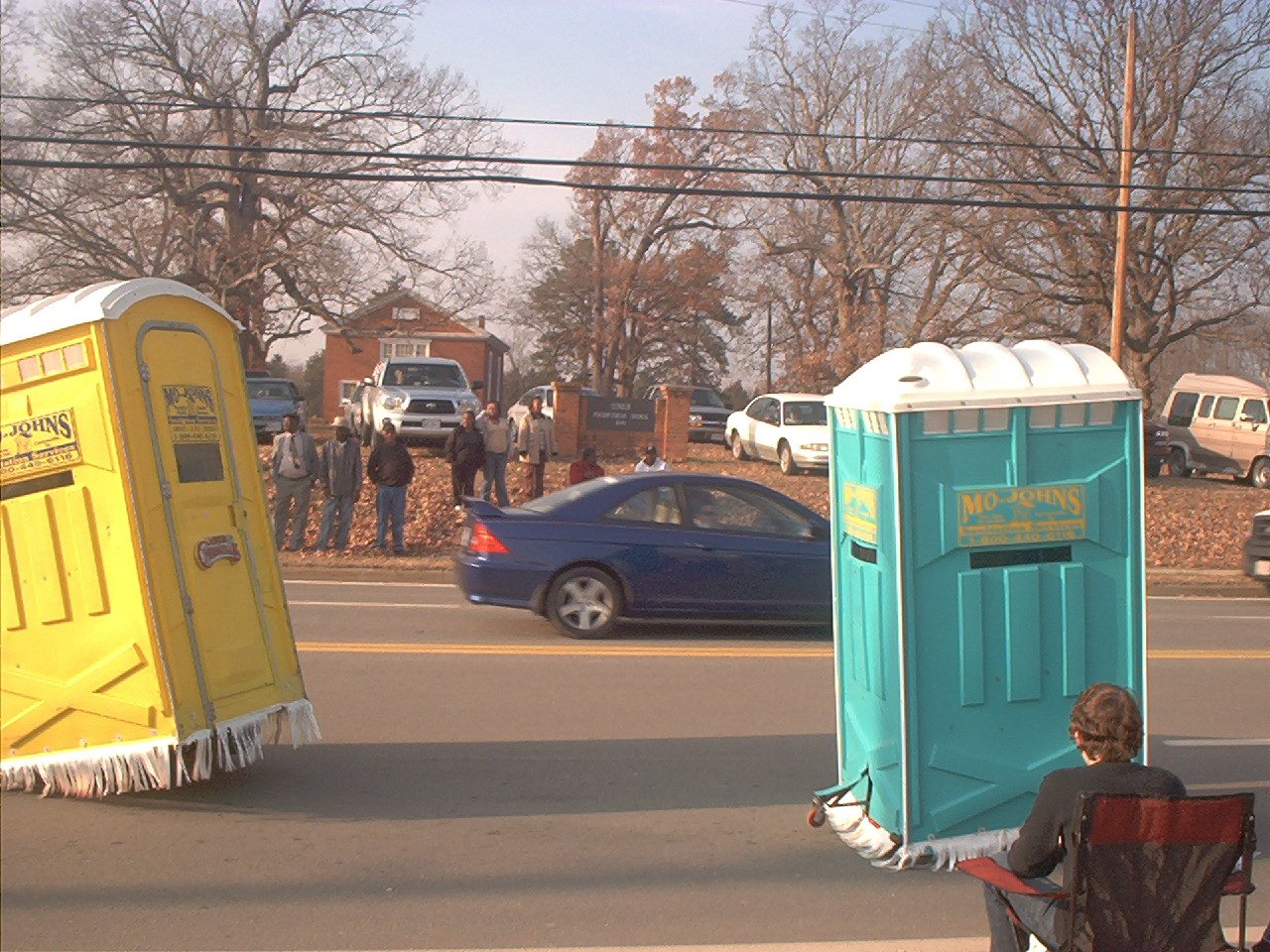 and here we have the most famous thing in our parade every yr...the go-kart porta potties. Yeah, they do wheelies with em too...they git funnier every yr.