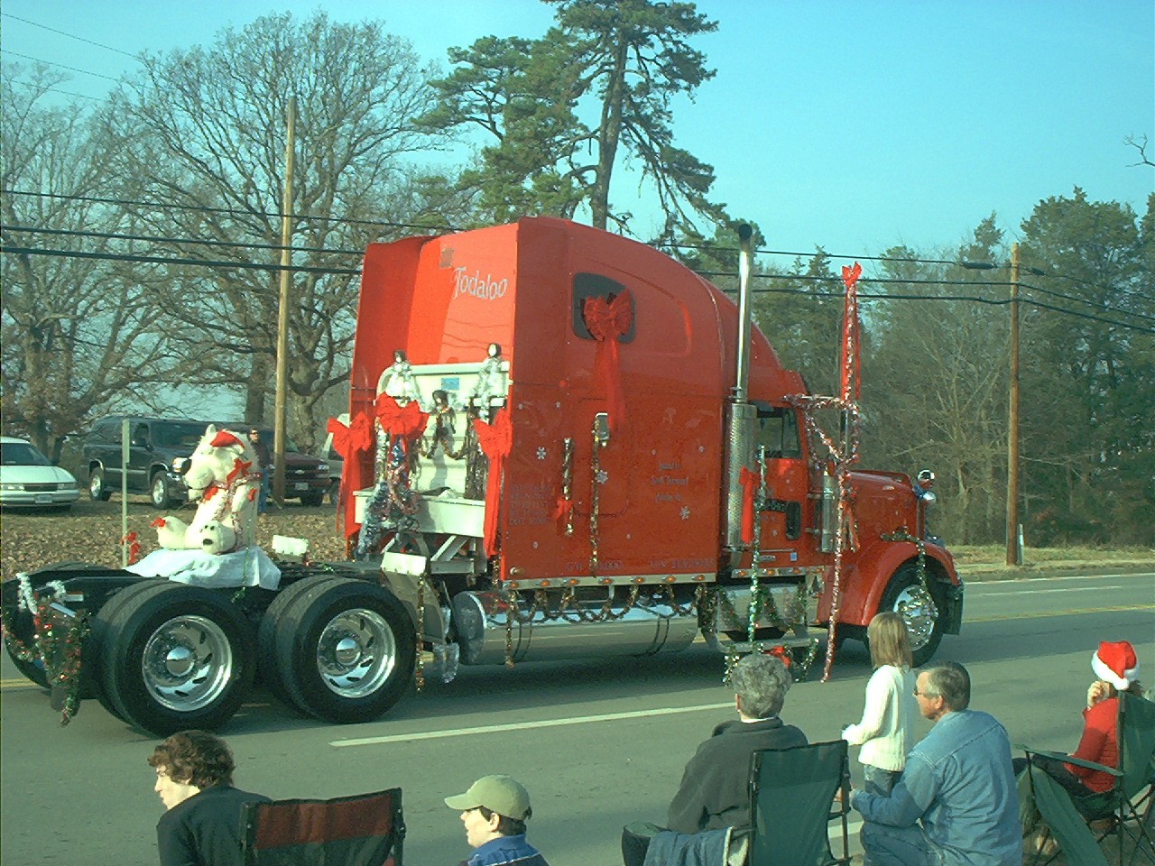 down here, truckin is still the coolest thing that there ever was. Everybody in the county dresses up their rigs and dump trucks and shows em off in the parade. This one was one of the most dressed that day. Nice lookin truck too....yeaaahhhh.