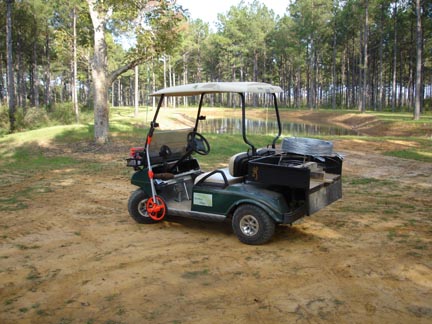 First I converted an electric 48 volt Club Car to a clays cart with a rear storage/hauler bed with a tailgate.