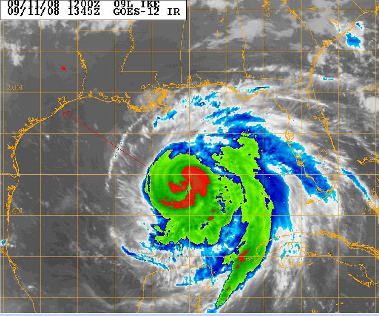 The red arrow is the approximate preposed path. The little red spider looking thingy is the approximate location of GoodOlBoy. Take a look at were the NE side (the BAD side) is going to be when the eye makes landfall. . . . . . . weeeeeeeeeeeeeeeeee GoodOlBoy