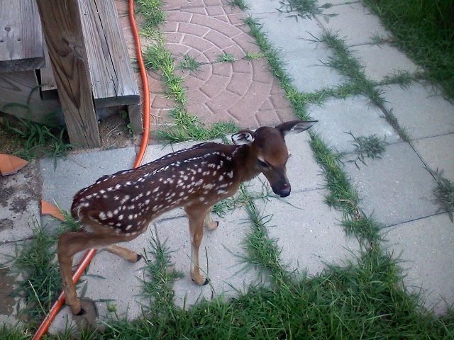 The second picture the baby is actually on my porch staring at the patch of woods where its momma is. You can almost see the bloody nose the dogs gave it while attacking it.