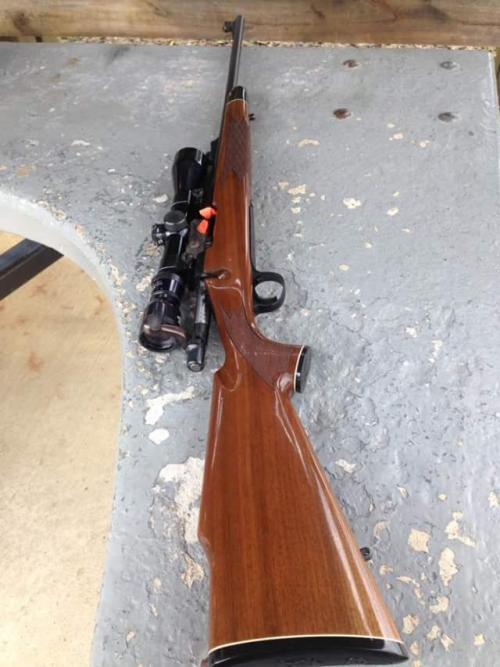 Don't have a handy pic of it... it's in the camera though... but I bought a fairly rare Winchester M-64 in 32Win Spec. Fairly rare just because it has a bolt peep sight like a Win 71 348. I have some 173 gr cast bullets loaded with 11.5gr of Unique... for deer of course. I now have it ready to go if the Wolfiecomes around again. Hunting the black timber for elk with one or the other lever guns..Either the Win 71 348 or a Marlin 1895 CB 45-70. If not in the timber I have Kimber Classic Select 300Win Mag. I would rather use the lever guns