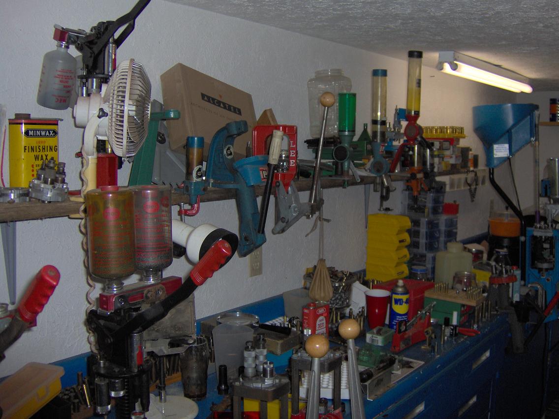 Your loading bench looks almost as cluttered as mine. I agree with you about the price of anything made out of lead around here. The price of any lead components (at least at Green Top) more than doubled either late last summer or early fall. Where are you located in Virginia? I am here in the far west end of Richmond. |