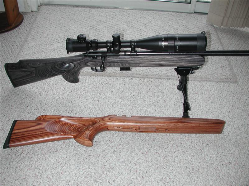 Just a picture of my Marlin 917v HMR. I recieved both stocks yesterday in the mail. The brown laminated is already traded off to a friend who also has a 917v but in M2. I was planning on using that stock on my 917m2 but trading the stock with a little cash for a .45. Anyways, here's couple pictures of it this morning. Be out all day with my buddy shooting. I'll bring my camera along. Hopefully we'll have a piles of birds to post.