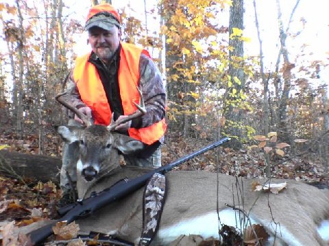 I finally made it into the woods for the first time last friday. Last day of our first muzzle loading season in TN. In the stand 45 minutes before first light, I waited until 6am before I began light calling. There was plenty of buck sign including a fresh scrape 20 yards behind my friends stand. I had never hunted this area before but he said it was a good spot. I called about every 10 minutes and at 6:30am during a loud, aggressive calling session, I see an Elm sapling shaking violently behind a large Oak tree from a distance of 55-60 yards. My first thought was a Squirrel, but the violent shaking only increased when I called again (tending grunts). I waited until it stopped and called again; lightly this time. That's all it took. He headed my way and when he stepped into the logging road at 35 yards, I put a 250 grain TC Shock Wave bonded pushed by 2 American Pioneer pellet sticks into his right shoulder. He scamppered off and fell within my sight, going maybe 50 yards. Penetration was excellent. Not a bad 2 1/2 year old, but the surprise was he field dressed 160 lbs (TN law requires us to check in all big game). Our deer are not only increasing in number, but average weight, and we now are seeing more P&Y and B&C deer coming out of TN. This buck had made a scrape under the Elm and was smelling rutted up. I'm not a dedicated trophy deer hunter, but I won't take another buck here at home (we're allowed 3 per year) unless he's a mature buck. We can take 3 does per day so meat isn't an issue. Good hunting, grayghost