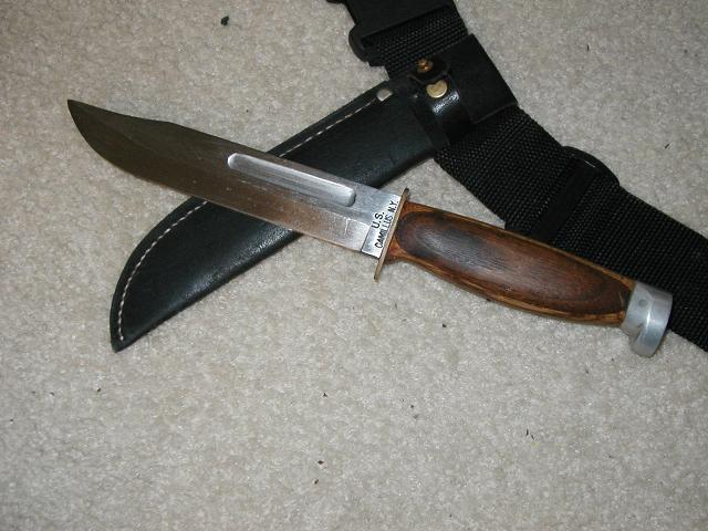 USMC Kabar 7.5" none serrated, and or Camillius version of same.