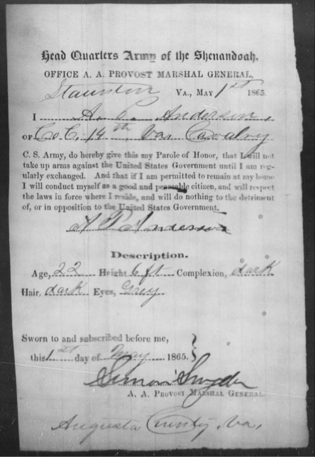 Andrew...to make a long story short...enlisted at the start and the crazy fool survived all 4 years. He was in alot of major battles and followed Lee to Appomatox. He surrendered there in 1865.