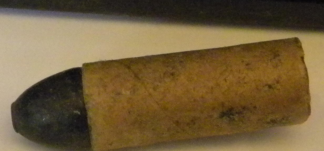 The needle gun (Dreyse needle gun) cartridge makes sense. A quick check of Wikipedia shows a cartridge diagram that doesn't quite match up to what you have, Skeet. They say the Dreyse used a .61 caliber bullet, and a paper cartridge that was rolled and tied at the 'upper' end (their words). I'm guessing the 'upper end' was the bullet end.