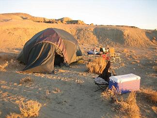 It's no wall tent, but it's served me well. This photo was taken on an antelope hunt in Wyoming this last Sept. We were able to drive right to this camp, if you have to boat in, canoe in or go in on horseback, I'd pack a bit lighter. If I'm driving in I'm going to bring comforts like chairs, air mattress and cold beer & fresh food. I can rough it, but I'd prefer not to if it's not necessary for the hunt.