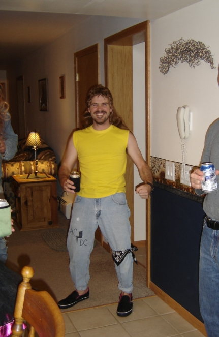 I got one that'll take the cake! You boy's got nuttin on a Petey with a Mullet! This was taken at our most recent 80's party. This should just make some of you redneck gals just start salivating. The ol' Wife Beater/Mullet combo. No gal can resist!