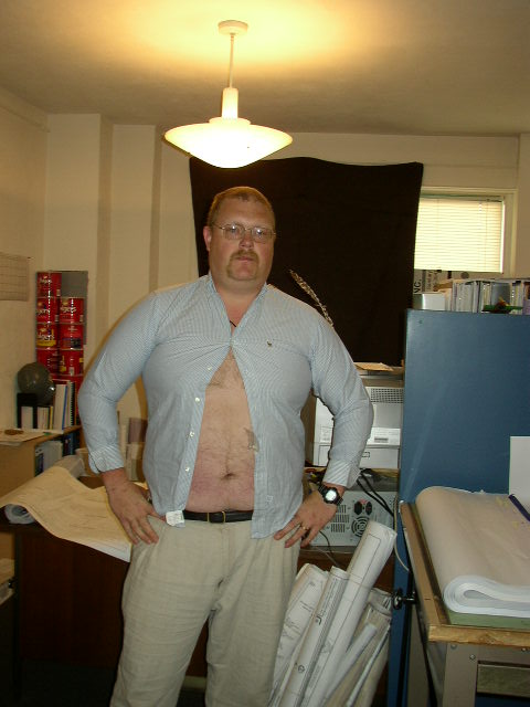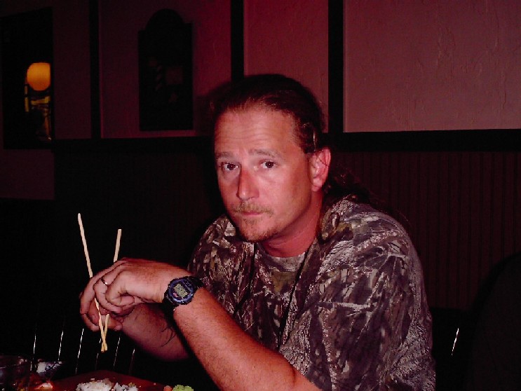 This is what a Petey looks like on a Friday after a nice long week of work and only 1 cup of coffee in him. Notice the grizzled, haven't shaved in 3 days look which is common during the hunting seasons. He'd rather have wiskers than wear a face mask while sitting in the tree. The slight smirk on the face because he knows he's going hunting deer with his new fangled muzzleloader in the morning and coon the next evening.....and he knows he only has 6 more hours and he's outta here until Monday!