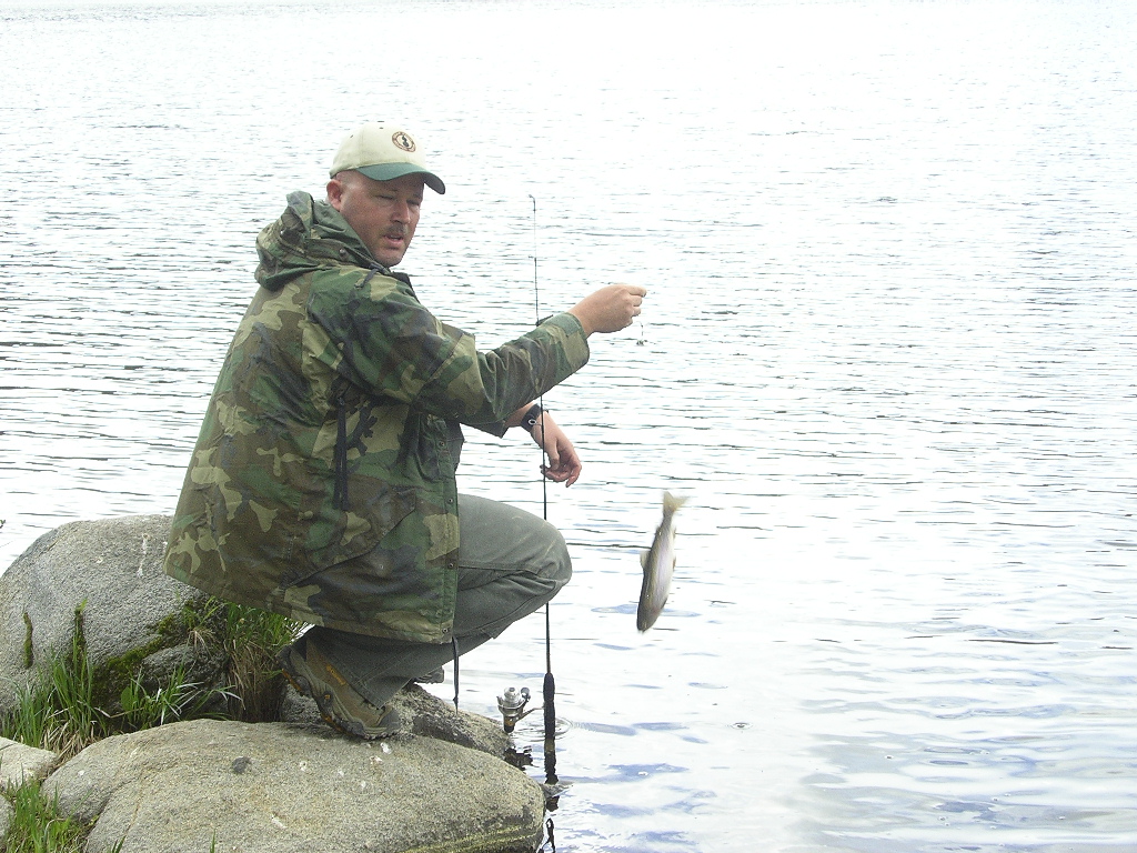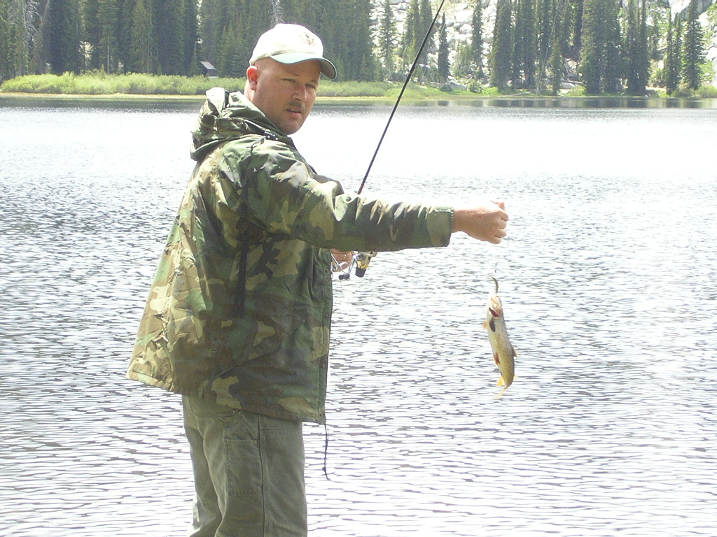 The wife and I decided to take a drive up in the mountains and I took my fishin gear with me. I didn't do so good at the first lake we stopped at but the 2nd, wow, they were all over the place. I tried my fly rod but I couldn't get it out far enough because the wind was right in my face and I didn't bring my waders along. I switched to my spinning rod and started catchin cutthroat but on every other cast. A couple flipped off as I was bringing them in but I landed 2 nice ones. After a while, the wind picked up more and it started raining so we had to cut it short but we're definitely going back up. Here's a couple pics. The first one flipped off the hook just as my wife snapped the pic.