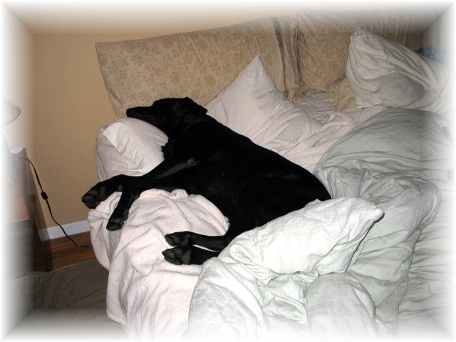 Me, I prefer to use the couch. Nitro sleeps on the couch most of the winter, but prefers the floor (i.e., granite, ceramic tile, and hardwood) during the summer because it is cooler.