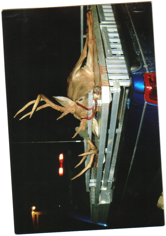 As far as riding around with deer hanging out of my truck, the only way that would happen is if I had them piled so high that they were above the walls of the bed. I try to keep them away from everybody's view, not because of politic correctness, but because of little children. A lot of kids don't understand death, and I don't want to be the one that causes their parents to have to explain it to them. Kind of like I wouldn't want any of my kids to learn about Santa Claus through somebody else. Of course, my kids will be exposed to dead animals at a young age, so I'll deal with the issue when it comes up.