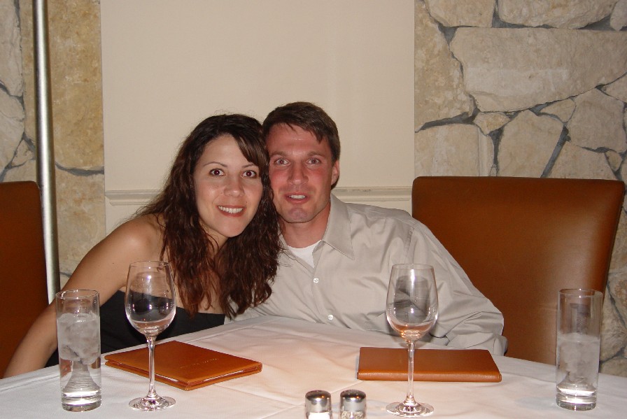 Here is a picture of the two of us on our honeymoon at dinner at Emeril's steakhouse, Delmonico, in Las Vegas. I must say that is one of the best steak places I have been to. I didn't like the appetizer that we ordered, but the steak and the desert definitely made up for it.