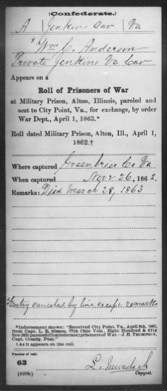 He was shipped to camp chase, ohio and then transferred to Ill. He died there of "chronic diarrehea".