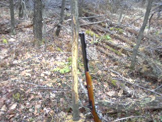 I'm saving my tag for a one of several nice bucks I've been hunting since archery season back in October. I've passed up over 22 oportunities at different buck from archery to rifle (yeah I missed one long range hunting). Some of them were good bucks, but I have a few real DANDIES and I'd rather eat a tag than shoot a scrub. Here's a picture of a "Fresh" rub of one I've been hunting. The picture isn't great as I took it with my phone, but notice the bark at the base of the tree. This isn't the biggest of rubs I've found, but one I figured I'd take a picture of, just b/c I had my phone with me. Marks on the tree go from my head to my ankle. I've seen this particular buck a few times during archery, but never within range. I hope he makes the mistake of showing himself with my smokepole in my hands.