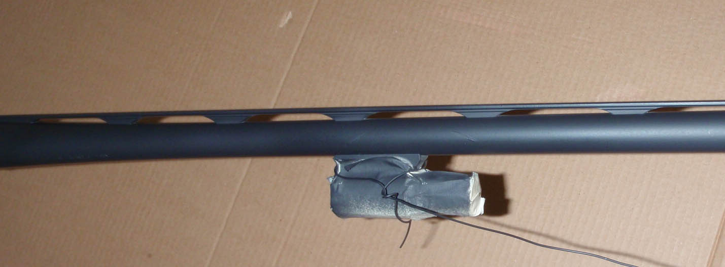 This is the 391 cap and barrel. The cap was rusted, the barrel had, had a choke tube laid on it in the case and the case closed, the choke scratched and gouged about 3 inches of barrel right in front of the gas port / spring area going to the muzzle, to the right in this case.